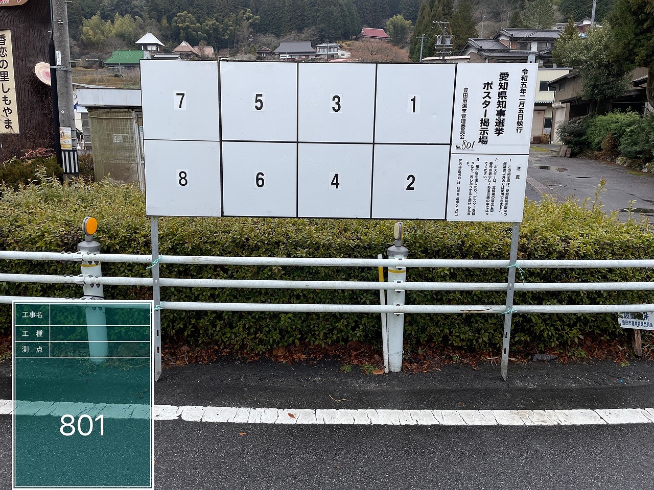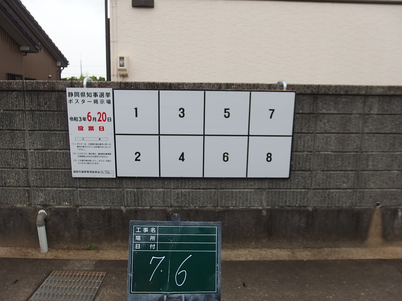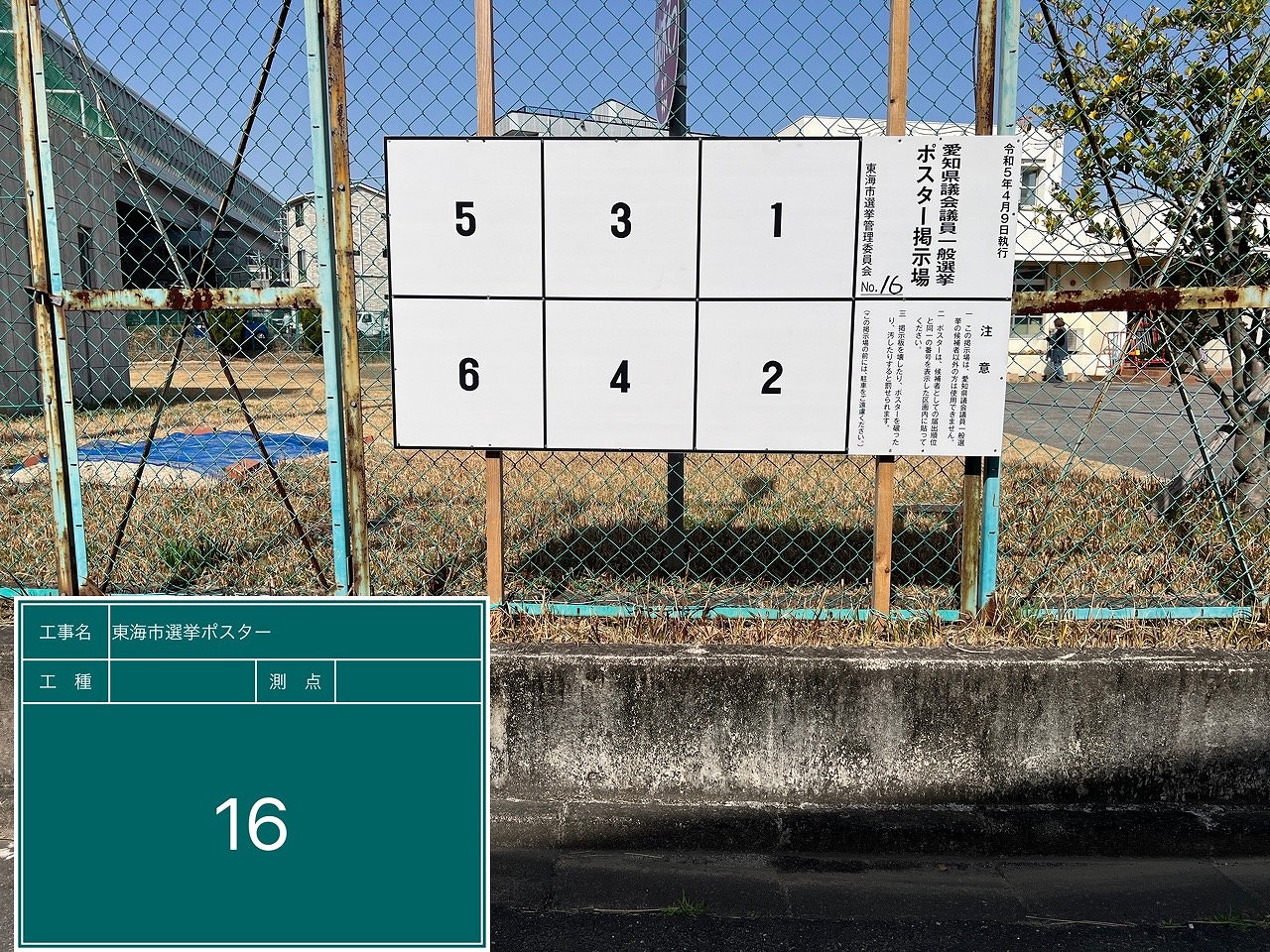 写真の例は、アルミ公営選挙用ポスター掲示板の設置例の一部になります。