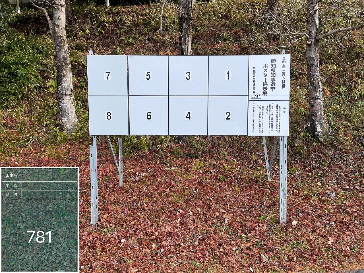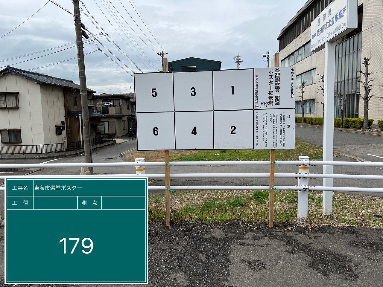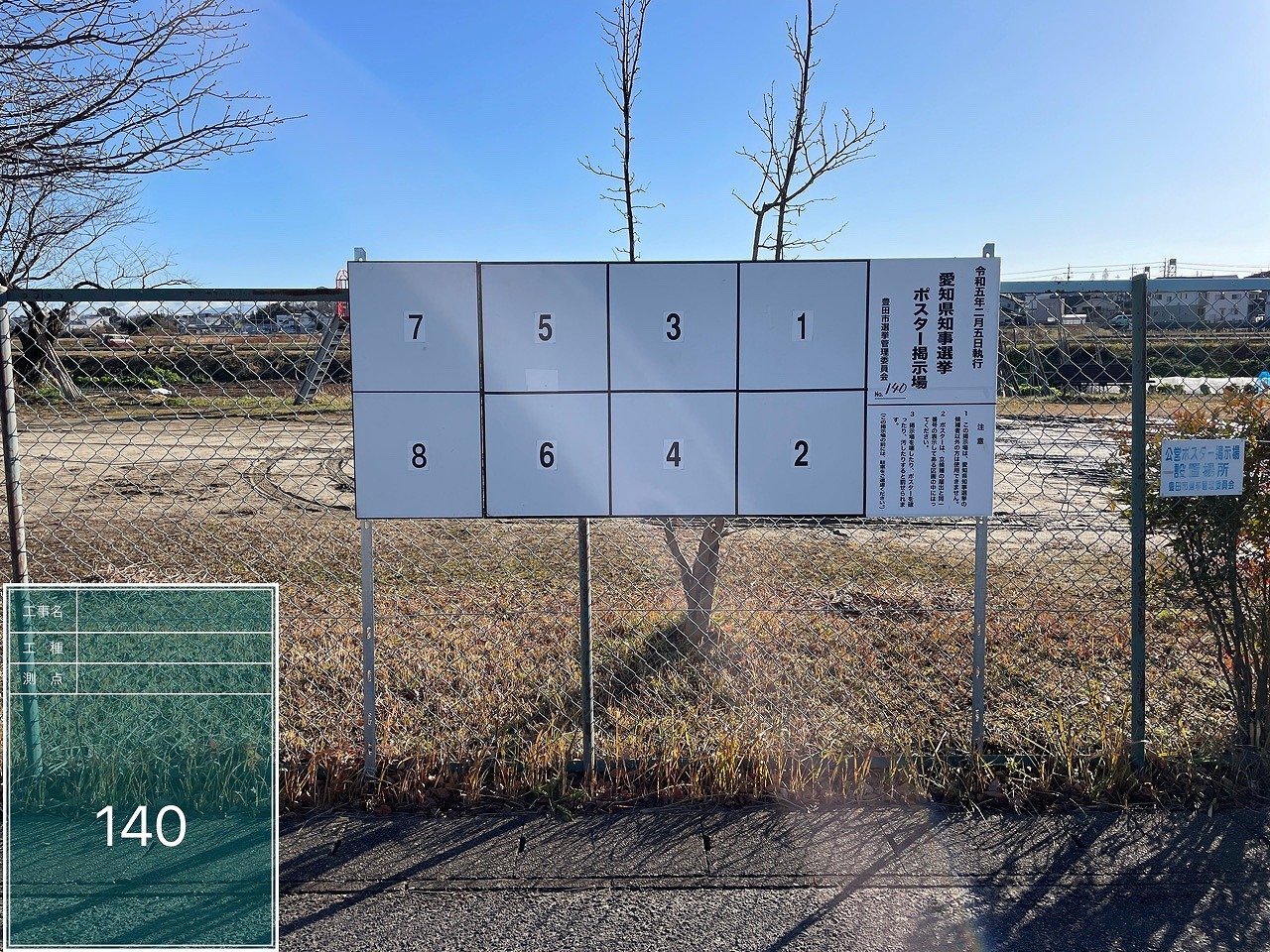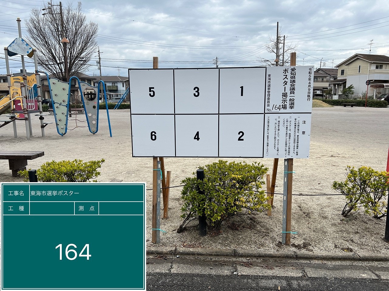 写真の例は、アルミ公営選挙用ポスター掲示板の設置例の一部になります。