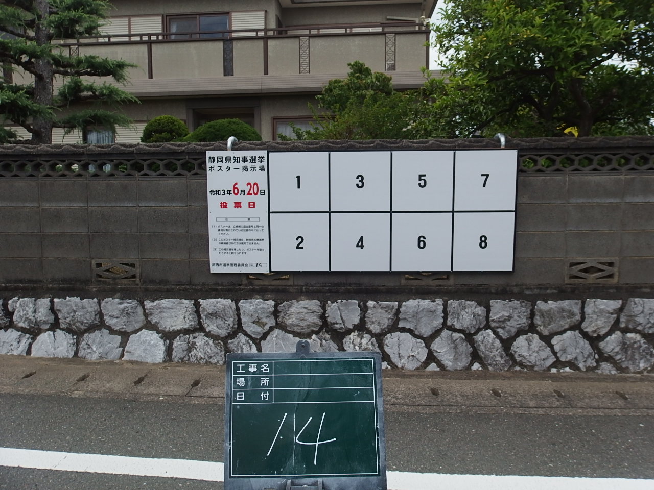 写真の例は、再生紙公営選挙用ポスター掲示板の設置例の一部になります。