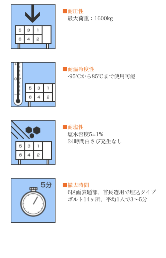 区画数が多い配置にも対応できる強度も備わっており、設置・撤去作業に人員も時間もかかりません。